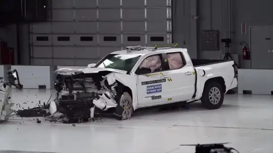 Свежие краш-тесты от американского института дорожной безопасности IIHS вновь всколыхнули рынок. Два популярных внедорожника — Toyota Tacoma и Infiniti QX80 — показали совершенно противоположные результаты. Обновлённая Toyota Tacoma 2024 года в кузове Double Cab не смогла набрать высоких баллов в модернизированном тесте с умеренным фронтальным перекрытием. По мнению экспертов, ремень заднего пассажира сместился с таза на живот, что увеличивает риск внутренних повреждений. Также отмечен умеренный риск травмы грудной клетки.