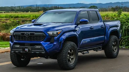 Скорее всего, перед нами версия TRD Sport Double Cab 2025 года с 2,4-литровым турбомотором мощностью 278 л.с. и подключаемым полным приводом. Базовая цена такого авто — от $39 400. Эта комплектация предлагает цифровую панель 12,3 дюйма, амортизаторы TRD Sport и выбор между «механикой» и 8-ступенчатым «автоматом». Такой Tacoma — идеальный вариант для тюнинга и приключений.