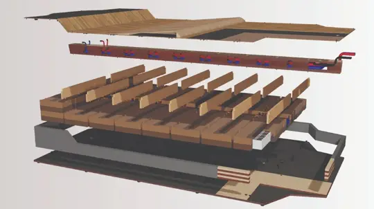 Использованы три вида дерева — берёза, тополь и павловния. Их ядро защищает лёгкая стальная обшивка. В краш-тестах гибрид поглощал на 98% больше энергии, чем обычный алюминий. При добавлении слоя пробки температура на внешней стороне конструкции снижалась до 100 градусов по Цельсию по сравнению с Tesla — даже при нагреве до 1300 градусов.