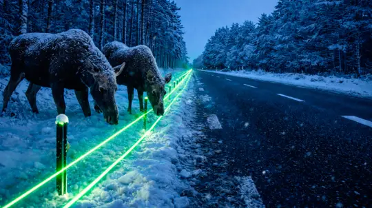 В Нидерландах начали тестировать так называемые «световые заборы» для защиты диких животных от автомобильных трасс. Речь идет о тонких лазерных линиях, которые проецируются вдоль обочин и визуально воспринимаются животными как реальные ограждения.