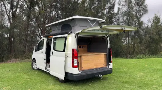 Toyota Hiace превратили в компактный кемпер с подъемной крышей