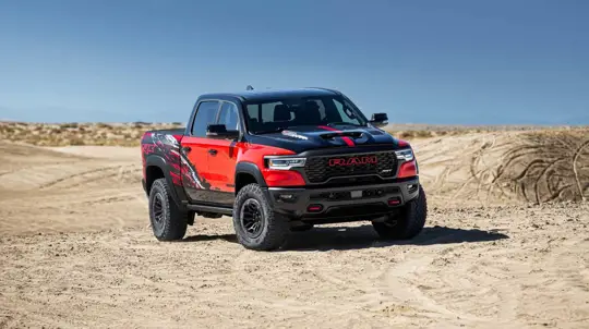 The 2027 Ram 1500 SRT TRX returns with a 777-hp supercharged HEMI V8, AWD and Bilstein e2 dampers. 0-60 in 3.5s, Level 2+ assist, Uconnect 5. From $99,995.
