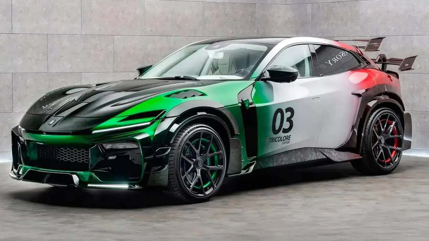 Selon SPEEDME.RU, la livrée blanche et verte tente de donner un air officiel à ce super-SUV, mais la patte Mansory ne laisse aucun doute. À l’avant, un bouclier revu avec une aérodynamique plus acérée, du carbone forgé, des ailes élargies et un capot largement ajouré. À l’arrière, un grand aileron, un spoiler supplémentaire et un diffuseur complexe coiffé d’un quadruple échappement renforcent le spectacle. Dans cet apparat, le Purosangue s’apparente davantage à une vitrine roulante du savoir-faire en préparation qu’à une tentative de le fondre dans les couleurs d’un service public.