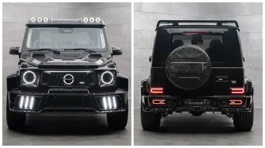 만소리가 메르세데스‑AMG G 63용 P820 패키지를 공개했다. 첫인상은 브라부스 작품으로 착각해도 이상하지 않을 만큼 날이 서 있다. 이번 업데이트의 중심은 외관이다. 더 넓어진 펜더와 새로운 사이드 스텝, 형태를 손본 보닛과 그릴, 보조 사이드 라이트가 추가된 프런트 범퍼가 적용됐다. 윈드실드 위쪽에는 추가 조명 모듈이 깔끔하게 매립됐다.