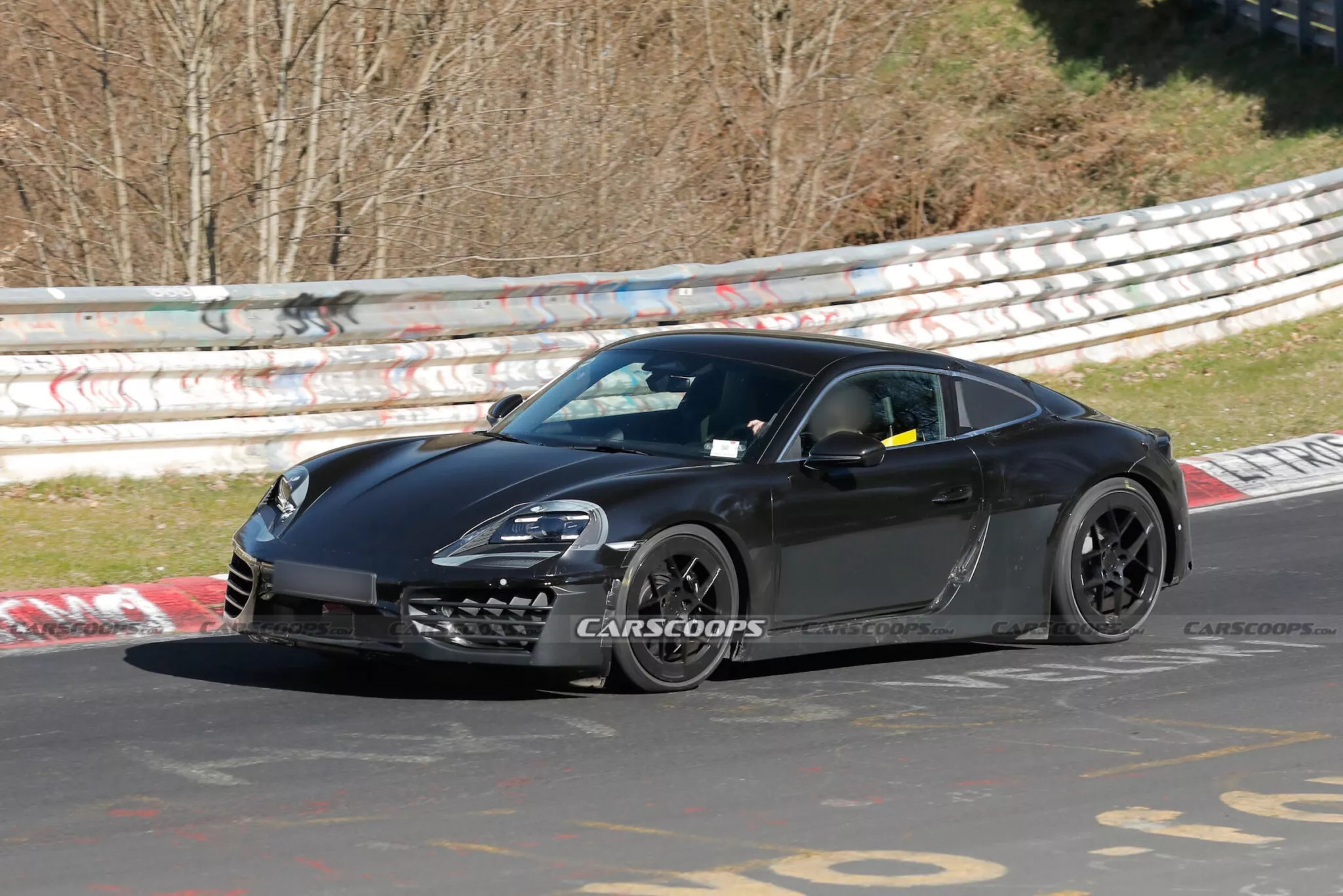 На шпионских фото с Нюрбургринга видны два прототипа с разными дисками и активным спойлером. Несмотря на смену силовой установки, пропорции остались привычными: длинный капот, спортивная посадка и компактный силуэт «фастбэка». Багажники спереди и сзади, как у бензиновых Cayman, сохранятся.