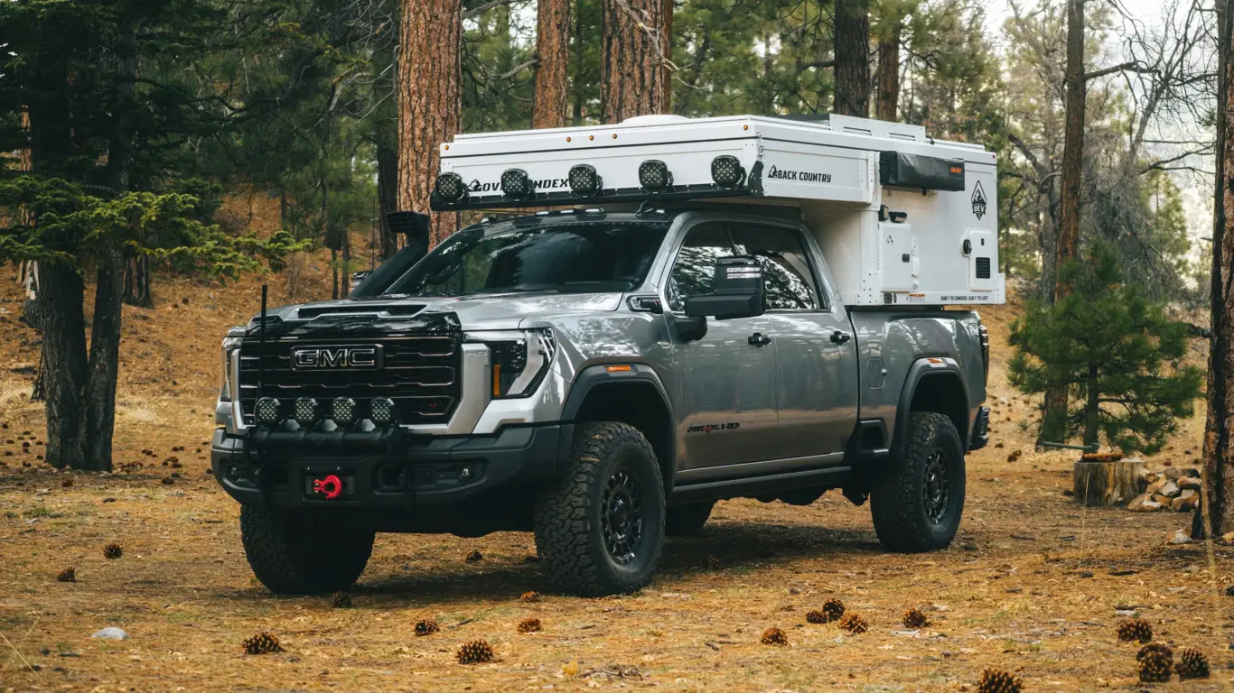 GMC Sierra HD AT4X AEV Edition 2025 года стал основой для создания уникального автомобиля для кемпинга и путешествий, представленного на выставке Overland Expo. Этот пикап отличается выдающимися внедорожными характеристиками и стильным дизайном, что делает его идеальной основой для экстремальных поездок.Sierra HD AT4X AEV Edition оснащен мощным дизельным двигателем 6.6L V8 L5P Duramax с 470 л.с. и 975 Нм крутящего момента. Мощность передается на все четыре колеса через 10-ступенчатую коробку передач Allison. В стандартную комплектацию входят стальные бамперы, защита картера, расширители колесных арок и электронная блокировка заднего дифференциала.Для более серьезных внедорожных испытаний AEV добавил специальные улучшения: колеса AEV Salta XD размером 18х9 дюймов, комплект для увеличения клиренса, шины BFGoodrich All-Terrain K02, лебедка ComeUp SOLO 12.5rs и другие элементы. Также установлены модификации для улучшения выхлопа и подвески.Особое внимание уделено оснащению кузова — это кемпер OEV Back Country с изолированными стенами, подходящий для круглогодичного использования. В нем предусмотрены все удобства для кемпинга: водонагреватель, солнечные панели, душ и даже переносной костер.
