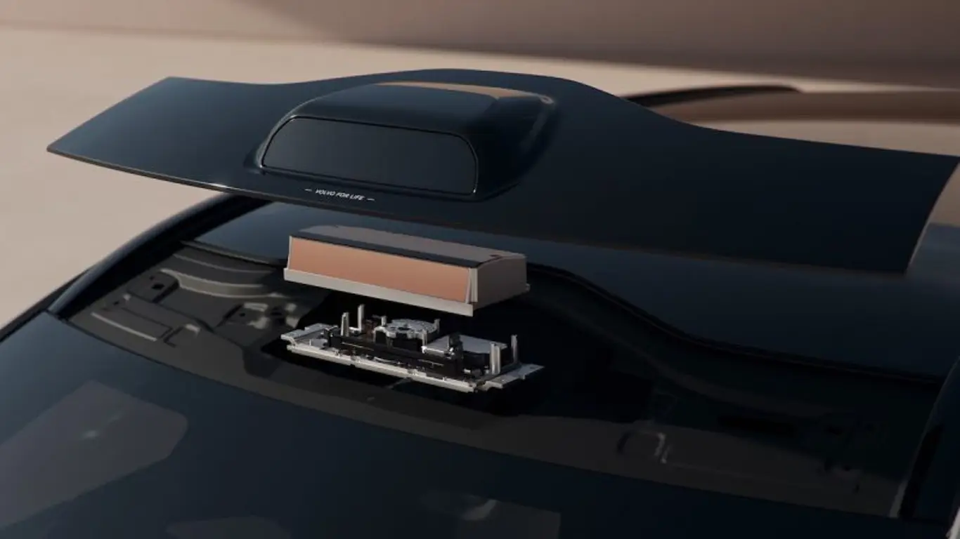 Volvo EX90 использует на крыше лазерный LiDAR для считывания окружающей обстановки — даже в полной темноте. Однако компания предупредила: снимать этот сенсор вблизи на смартфон опасно для самой камеры.