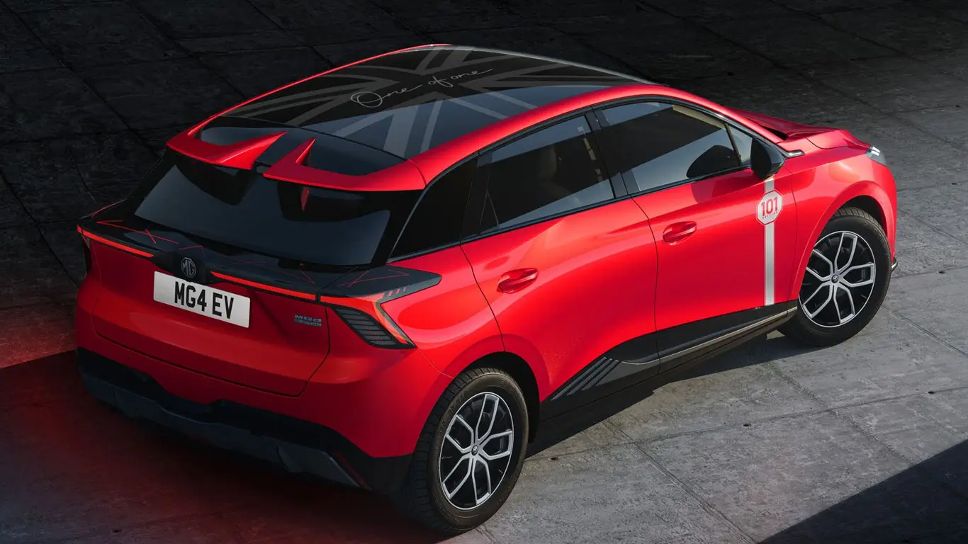 Особенность данной ограниченной серии MG4 101 Edition заключается в эксклюзивных элементах дизайна кузова: автомобили украшены изображением на крыше, стилизованным под британский флаг, а также уникальной надписью «One of One», подчеркивающей уникальность каждого экземпляра. Покупателям предлагается выбор из двух ярких цветов кузова: динамичный красный («Dynamic Red») и благородный синий оттенок («Holborn Blue»), оба цвета дополняются эффектным двухцветным интерьером салона.