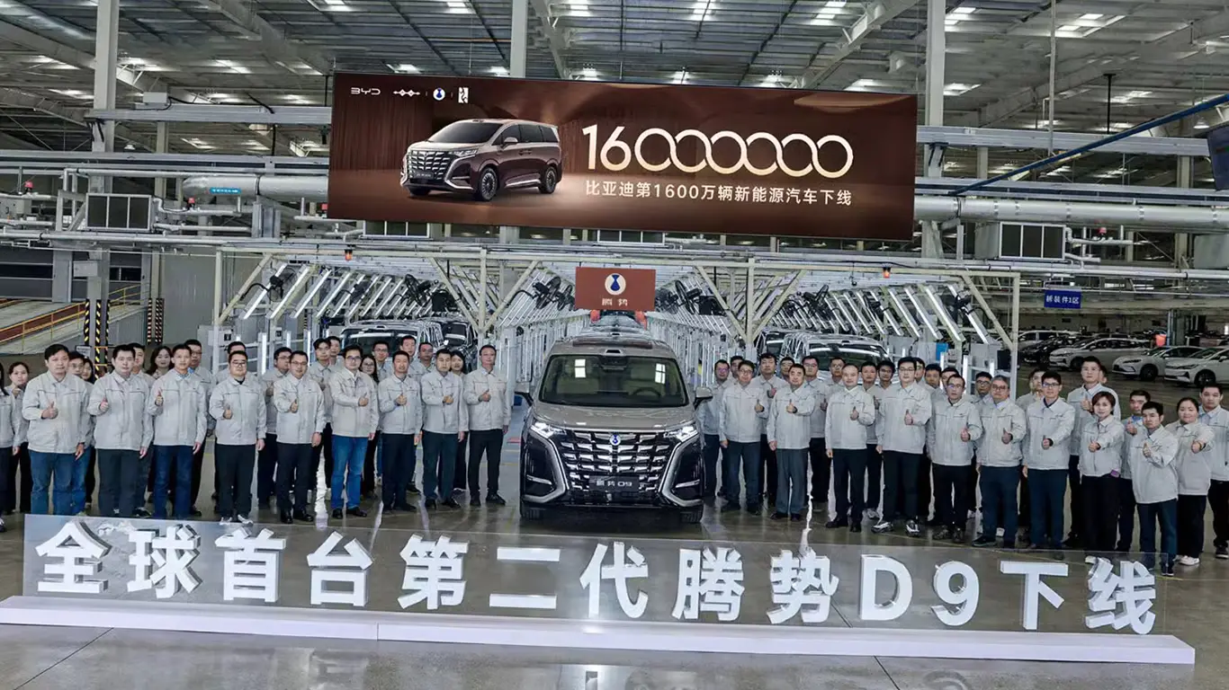 BYD продолжает наращивать темпы производства и достигла отметки в 16 миллионов автомобилей сегмента NEV. Юбилейной моделью стал новый Denza D9 второго поколения — важный шаг для рынка новых автомобилей 2026 и всей индустрии электромобилей. Знаковый рубеж был достигнут всего через 120 дней после выпуска 15-миллионного автомобиля в декабре 2025 года. Для сравнения, путь от 10 до 15 миллионов занял всего 13 месяцев — темпы, которые практически недостижимы для конкурентов.Компания начала выпуск NEV ещё в 2008 году, но основной рост пришёлся на последние годы, когда рынок китайских автомобилей резко ускорился.Юбилейной моделью стал обновлённый Denza D9 — премиальный минивэн, доступный в гибридной и полностью электрической версиях по цене от 389 800 юаней. Автомобиль оснащён батареей Blade второго поколения и новой системой быстрой зарядки: с 10 до 70% аккумулятор заряжается всего за 5 минут, а до 97% — за 9 минут. Также модель получила систему помощи водителю Gods Eye 5.0, ориентированную на семейные и бизнес-сценарии.BYD продолжает унифицировать цены для BEV и PHEV-версий, что упрощает выбор для покупателей. Кроме того, компания планирует обновлять программное обеспечение и для уже выпущенных моделей. Несмотря на небольшое замедление роста в 2026 году, BYD остаётся крупнейшим игроком в сегменте NEV.Рекорд в 16 миллионов подтверждает лидерство BYD на глобальном рынке электромобилей. Китайские авто продолжают задавать темп индустрии, а такие модели, как Denza D9, демонстрируют, что ставка на технологии и масштаб производства приносит результат.