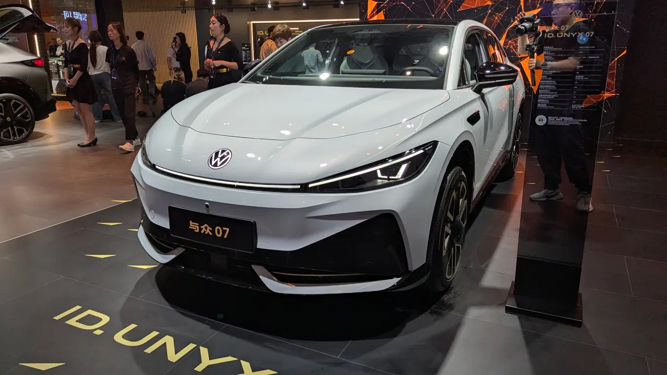 На автосалоне в Пекине журналисты издания 32CARS заметили новый Volkswagen ID.UNYX 07 — полностью электрический кроссовер, разработанный специально для Китая. Модель получила батарею на 60 кВт/ч, запас хода до 558 км по циклу CLTC и электромотор мощностью 170 кВт, что делает её одним из ключевых проектов бренда в сегменте электромобилей.