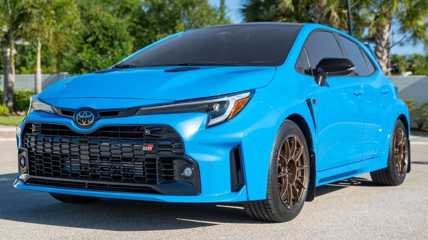 В США на онлайн-аукционе появился редкий хот-хэтч Toyota GR Corolla Circuit Edition 2024 года. Автомобиль с пробегом всего около 7 200 км продаётся без минимальной цены, что означает — итоговая стоимость определится исключительно спросом.Конкретный экземпляр имеет «чистую» историю: без ДТП, с подтверждённым пробегом и оригинальным титулом штата Флорида. Под капотом — 1,6-литровый турбомотор мощностью 300 л.с., работающий в паре с шестиступенчатой механикой и фирменной системой полного привода GR-Four.Cars&BidsОснащение включает углепластиковую крышу, дифференциалы Torsen спереди и сзади, аудиосистему JBL и полный набор ассистентов Toyota Safety Sense 3.0. При этом автомобиль получил ряд доработок, включая новый впуск, выхлоп и легкосплавные диски Sparco.По словам владельца, машина продаётся из-за нехватки места — в гараже её уже заменил Ford Mustang Shelby GT350. На момент публикации ставка достигла $12 500, но до завершения торгов остаётся почти неделя, и цена, вероятно, вырастет.Такие предложения редки для GR Corolla, особенно в версии Circuit Edition, что делает этот лот интересным для энтузиастов. Итоговая цена покажет, насколько рынок сегодня готов платить за «чистый драйверский» формат с механикой и полным приводом.