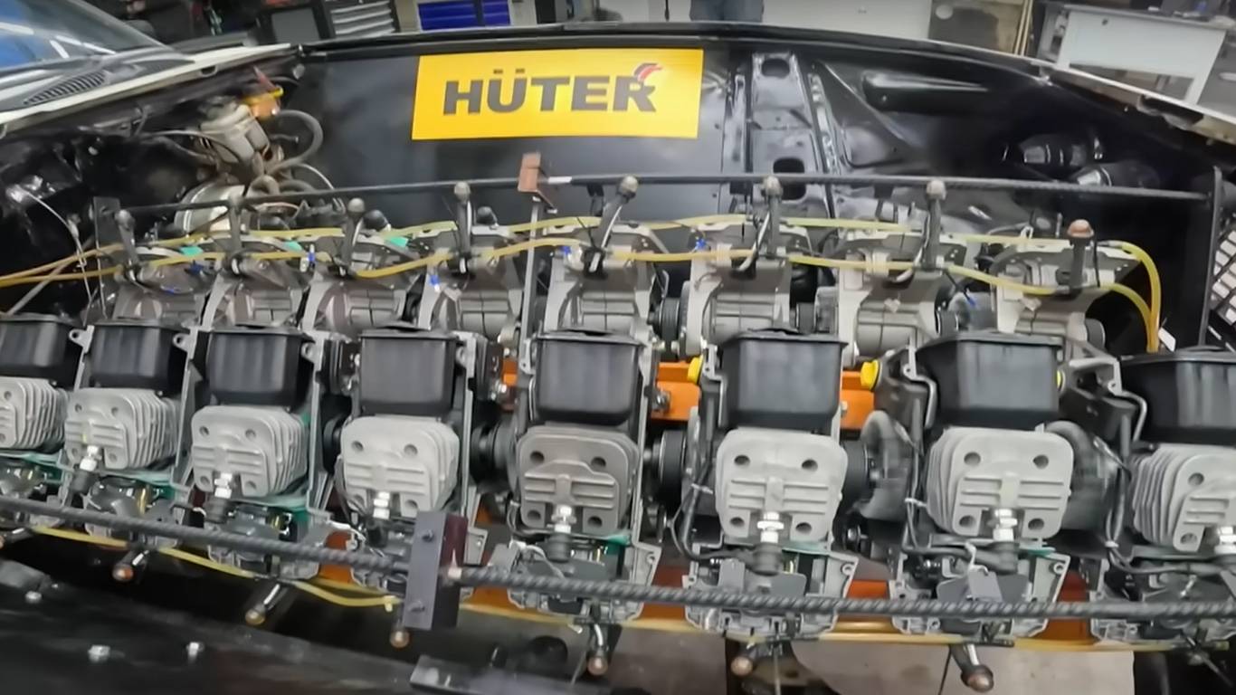В РФ испытали V16 из бензопил и установили его в Lada. Авто сняли на фото