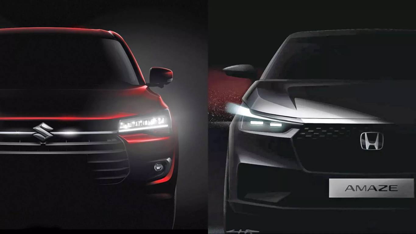 Honda и Maruti Suzuki уже начали тизерную кампании, показав лишь отдельные элементы своих новых моделей, чтобы подогреть интерес публики. Honda Amaze третьего поколения выглядит более агрессивно по сравнению с предшественником, благодаря шестиугольной решетке радиатора и удлиненным светодиодным фарам, вдохновленным дизайном более крупных моделей Honda.