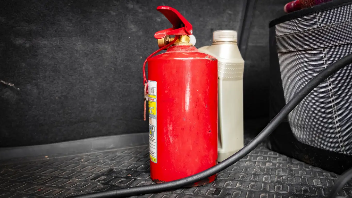 закрепите огнетушитель, чтобы он не болтался в багажнике или салоне.