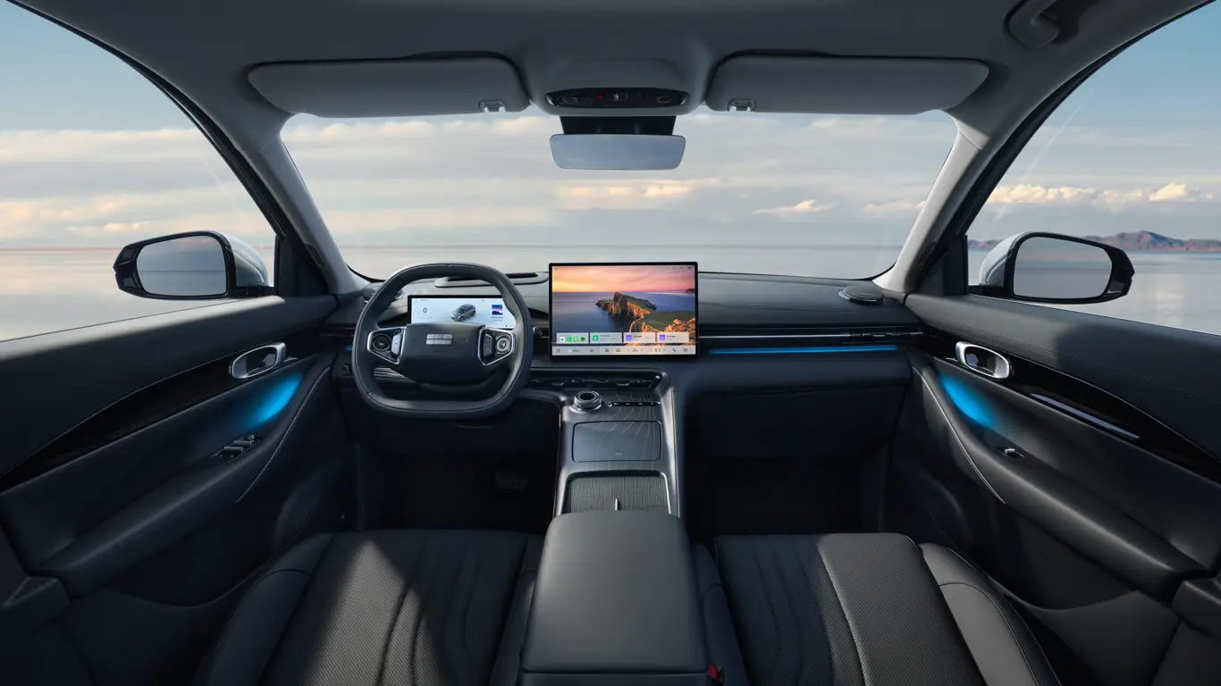 Передние сиденья получают вентиляцию и массаж, а водительское кресло оснащено функцией памяти настроек. Пассажирское сиденье в переднем ряду регулируется в четырех направлениях и дополнено электрорегулируемой подставкой для ног. При желании кресло можно разложить в полностью горизонтальное положение. Создать комфортную атмосферу в салоне поможет премиальная аудиосистема Flyme Sound с 16 динамиками и сабвуфером.